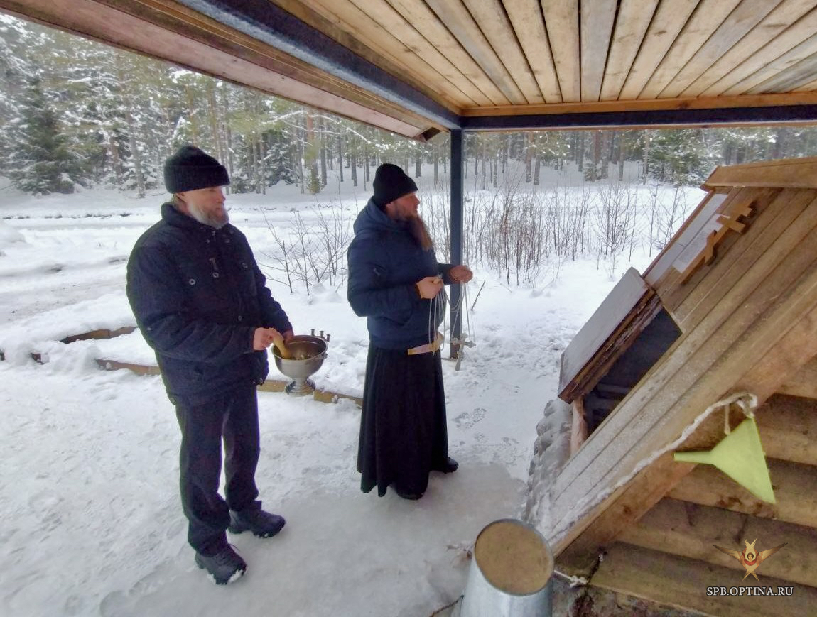 Также праздник Крещения Господня торжественно и радостно встретили в храме прп. Амвросия Оптинского, что на приусадебном хозяйстве подворья в Выборгском районе. Божественную литургию там возглавил иеромонах Павел (Зубков).