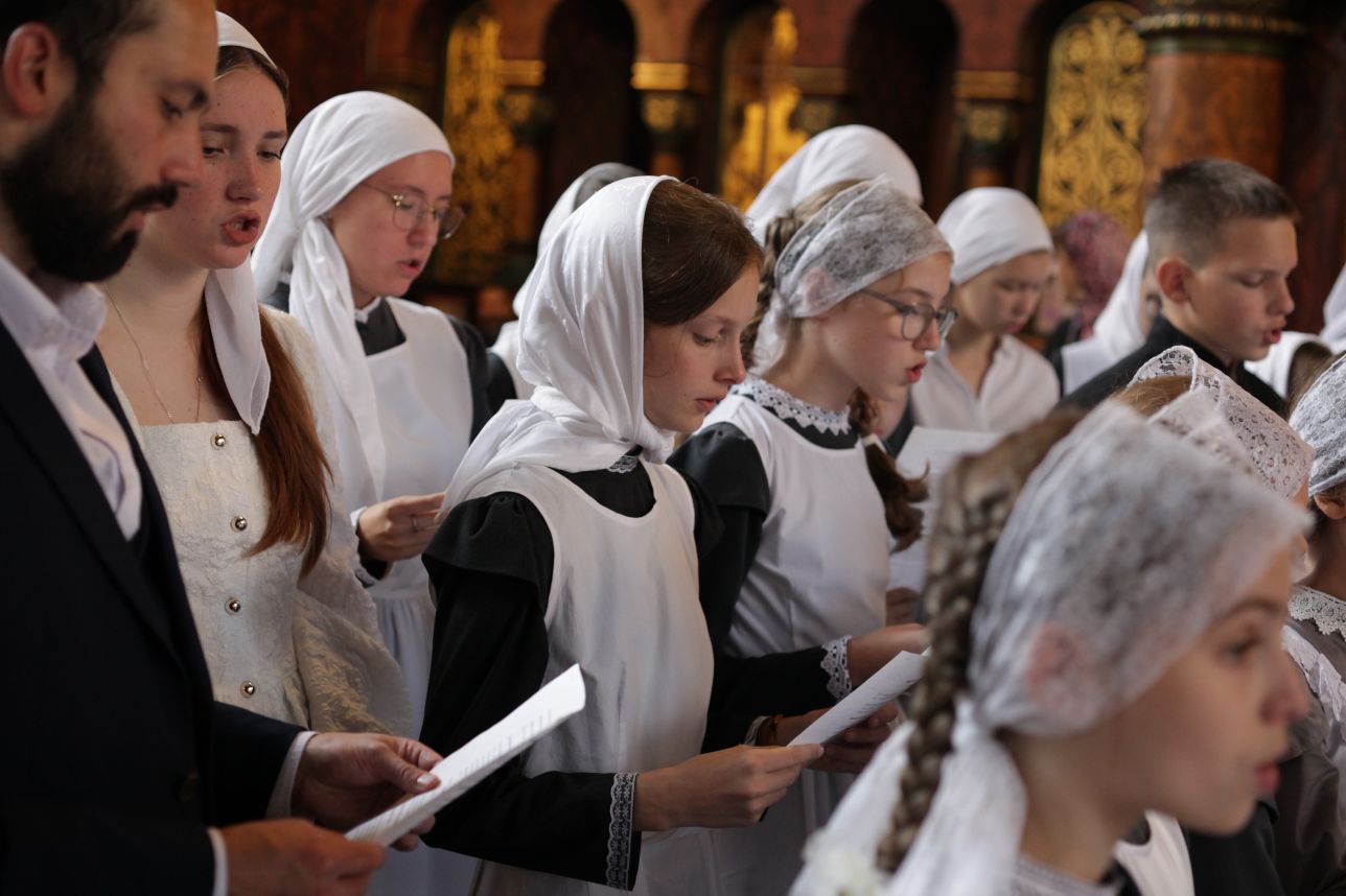 После вступительной части в конференц-зале воспитанники, родители и преподаватели направились в храм, где был совершён молебен о начале учения. В молитвенном единении возносились прошения о просвещении умов и сердец учащихся, даровании им успеха в постижении знаний, ограждении от всякого зла и укреплении в вере. Молебное пение сопровождалось молитвами Пресвятой Богородице и святым покровителям гимназии — преподобному Амвросию Оптинскому, преподобному Сергию Радонежскому, святым апостолам и святому праведному Иоанну Кронштадтскому.