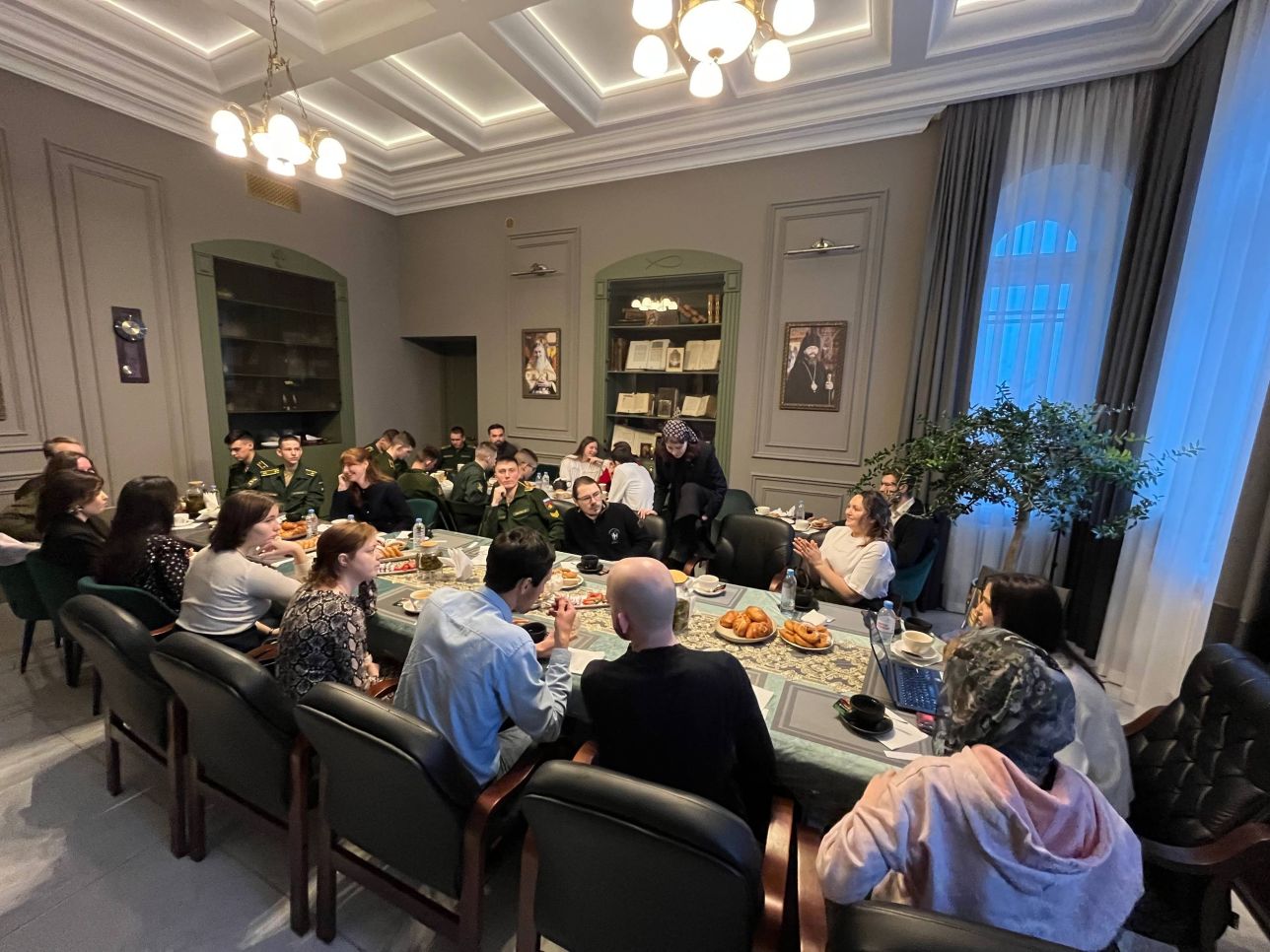 После занятия участники продолжили общение за чаепитием. В неформальной обстановке ребята знакомились друг с другом, делились впечатлениями, обсуждали духовные и повседневные темы.